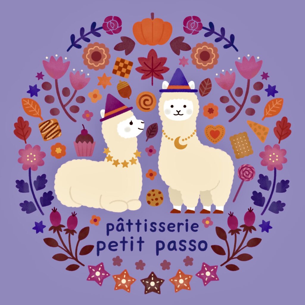 「pattisserie petit passo」さんのクッキー缶ハロウィンバージョンのイラストを制作しました。