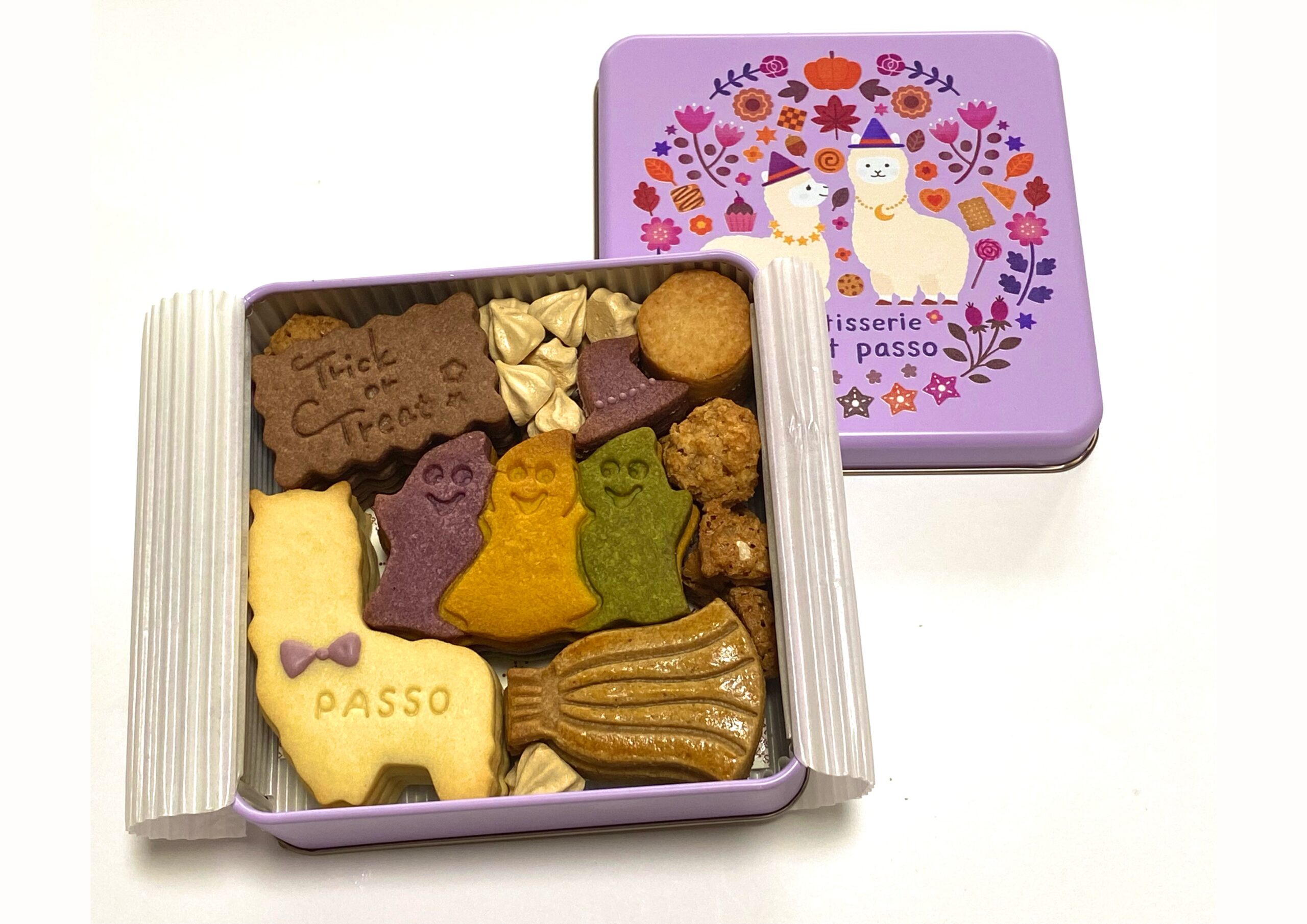 「pattisserie petit passo」さんのクッキー缶ハロウィンバージョンのイラストを制作しました。